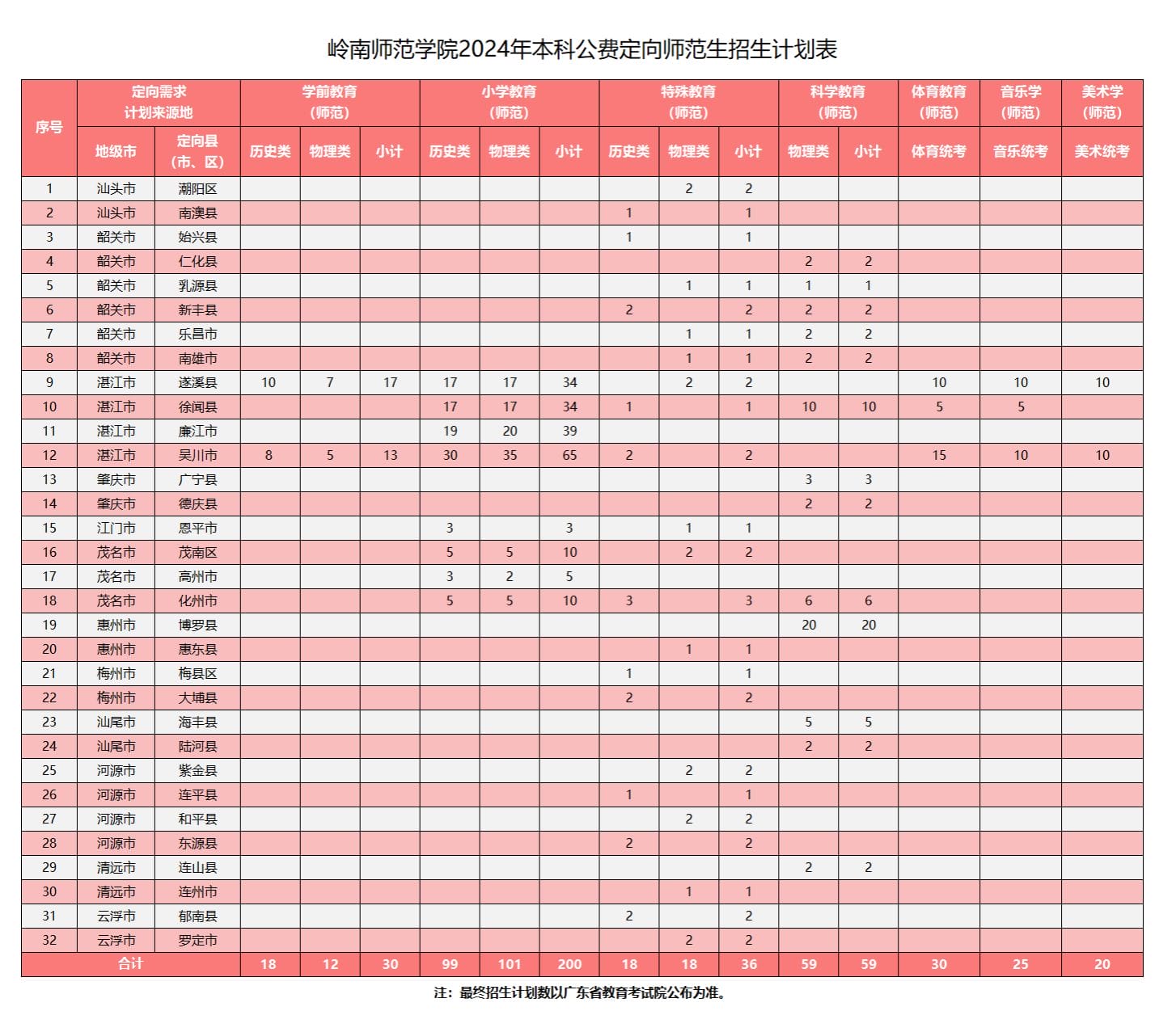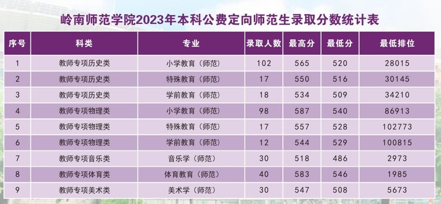 3.符合2024年度相应招考专业的报考条件,报考音乐、美术、体育类的考生,还需参加广东省普通高校招生统一考试的术科统考。高考成绩应达到2024年广东省招生委员会公布的公费定向培养教师专项计划录取最低分数线。